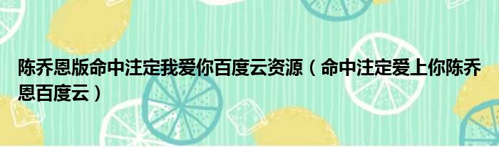 陈乔恩版命中注定我爱你百度云资源(命中注定爱上你陈乔恩百度云)