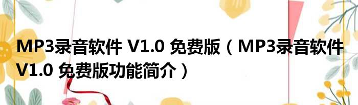 MP3录音软件 V1.0 免费版(MP3录音软件 V1.0 免费版功能简介)