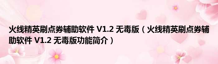 导读 大家好,关于火线精英刷点券辅助软件 V1 2 无毒版,火线精英刷点券辅助软件 V1 2 无毒版功能简介这个很多人还不知道,小勒来为大家解答以