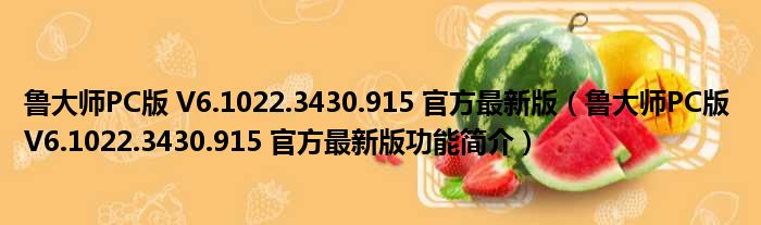 鲁大师PC版 V6.1022.3430.915 官方最新版(鲁大师PC版 V6.1022.3430.915 官方最新版功能简介)