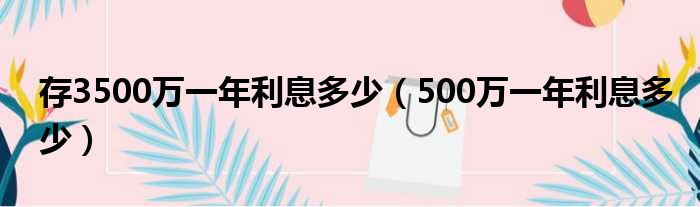 导读 大家好,今天小六子来为大家解答以下的问题,关于存3500万一年利息多少,500万一年利息多少这个很多人还不知道,现在让我们一起来看看吧!1