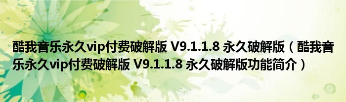 酷我音乐永久vip付费破解版 V9.1.1.8 永久破解版(酷我音乐永久vip付费破解版 V9.1.1.8 永久破解版功能简介)