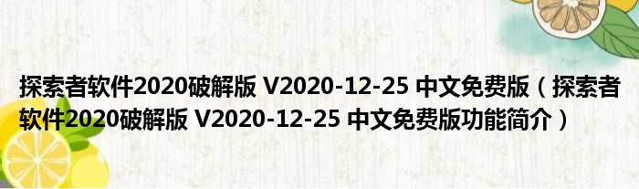探索者软件2020破解版 V2020-12-25 中文免费版(探索者软件2020破解版 V2020-12-25 中文免费版功能简介)
