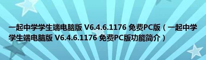 导读 大家好,关于一起中学学生端电脑版 V6 4 6 1176 免费PC版,一起中学学生端电脑版 V6 4 6 1176 免费PC版功能简介这个很多人还不知道,小勒
