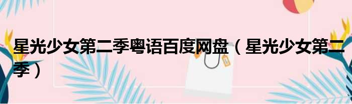 导读 大家好,今天小六子来为大家解答以下的问题,关于星光少女第二季粤语百度网盘,星光少女第二季这个很多人还不知道,现在让我们一起来看看吧