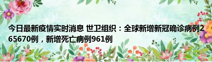 今日最新疫情实时消息 世卫组织:全球新增新冠确诊病例265670例,新增死亡病例961例