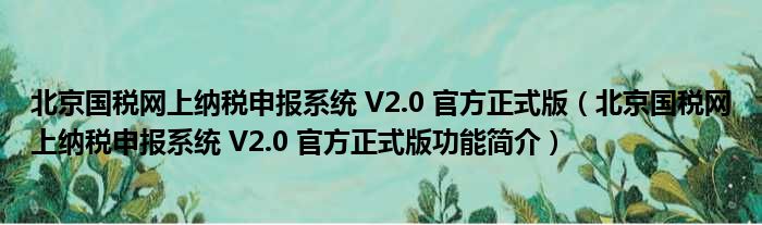 北京国税网上纳税申报系统 V2.0 官方正式版(北京国税网上纳税申报系统 V2.0 官方正式版功能简介)