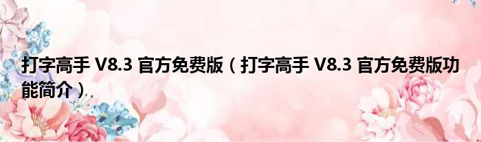 打字高手 V8.3 官方免费版(打字高手 V8.3 官方免费版功能简介)