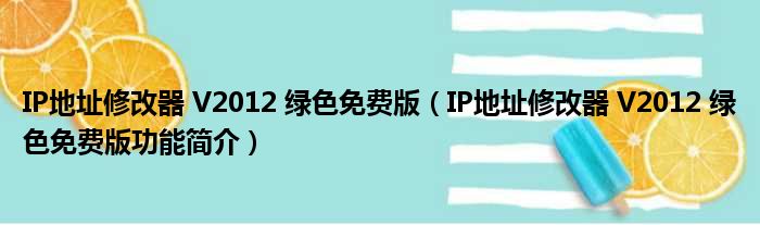 IP地址修改器 V2012 绿色免费版(IP地址修改器 V2012 绿色免费版功能简介)