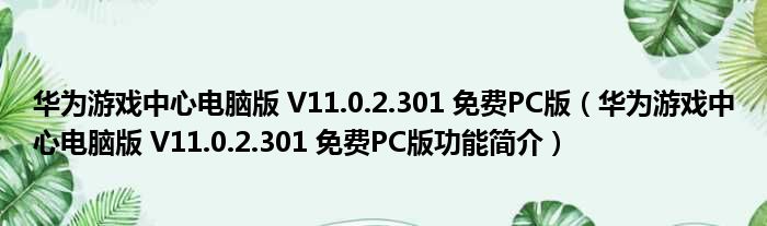 华为游戏中心电脑版 V11.0.2.301 免费PC版(华为游戏中心电脑版 V11.0.2.301 免费PC版功能简介)