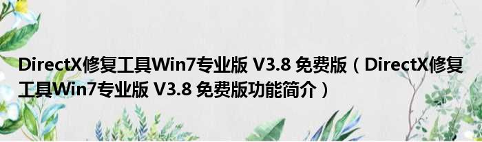 DirectX修复工具Win7专业版 V3.8 免费版(DirectX修复工具Win7专业版 V3.8 免费版功能简介)