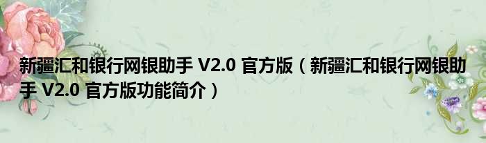 新疆汇和银行网银助手 V2.0 官方版(新疆汇和银行网银助手 V2.0 官方版功能简介)