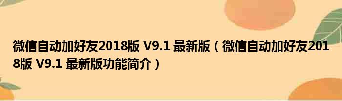 导读 大家好,关于微信自动加好友2018版 V9 1 最新版,微信自动加好友2018版 V9 1 最新版功能简介这个很多人还不知道,小勒来为大家解答以上的