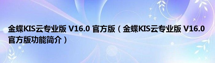 金蝶KIS云专业版 V16.0 官方版(金蝶KIS云专业版 V16.0 官方版功能简介)