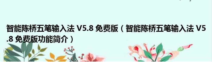 智能陈桥五笔输入法 V5.8 免费版(智能陈桥五笔输入法 V5.8 免费版功能简介)