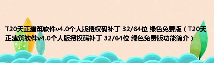 T20天正建筑软件v4.0个人版授权码补丁 32/64位 绿色免费版(T20天正建筑软件v4.0个人版授权码补丁 32/64位 绿色免费版功能简介)
