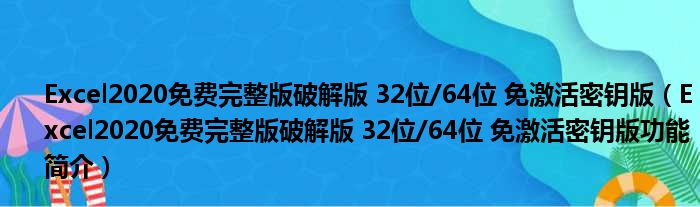 Excel2020免费完整版破解版 32位/64位 免激活密钥版(Excel2020免费完整版破解版 32位/64位 免激活密钥版功能简介)