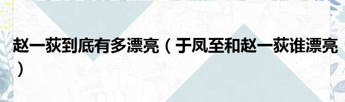 导读 大家好,今天小六子来为大家解答以下的问题,关于赵一荻到底有多漂亮,于凤至和赵一荻谁漂亮这个很多人还不知道,现在让我们一起来看看吧!1