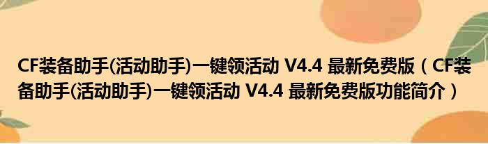导读 大家好,关于CF装备助手(活动助手)一键领活动 V4 4 最新免费版,CF装备助手(活动助手)一键领活动 V4 4 最新免费版功能简介这个很多人还