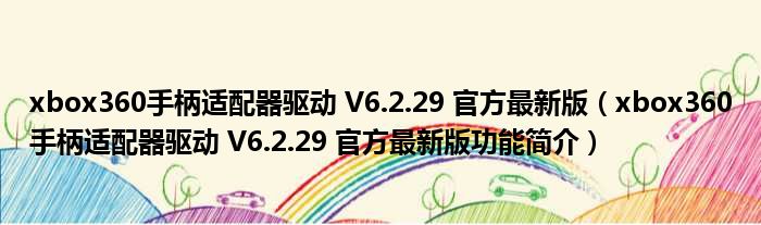 xbox360手柄适配器驱动 V6.2.29 官方最新版(xbox360手柄适配器驱动 V6.2.29 官方最新版功能简介)