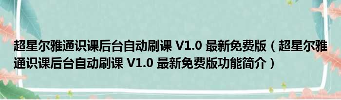 超星尔雅通识课后台自动刷课 V1.0 最新免费版(超星尔雅通识课后台自动刷课 V1.0 最新免费版功能简介)