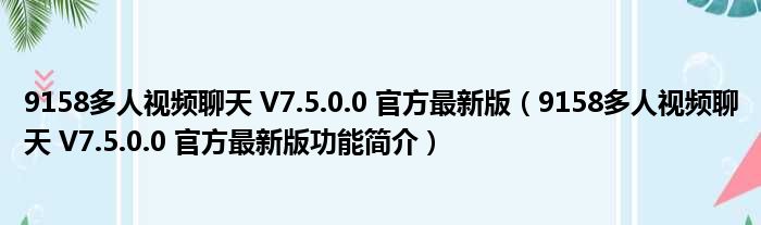 9158多人视频聊天 V7.5.0.0 官方最新版(9158多人视频聊天 V7.5.0.0 官方最新版功能简介)