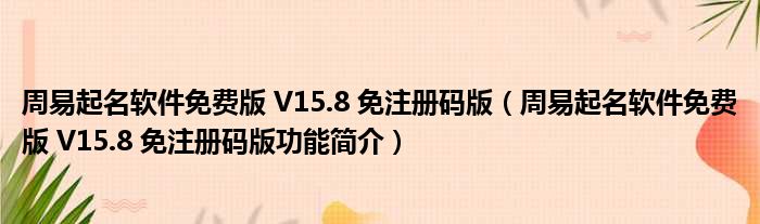 周易起名软件免费版 V15.8 免注册码版(周易起名软件免费版 V15.8 免注册码版功能简介)