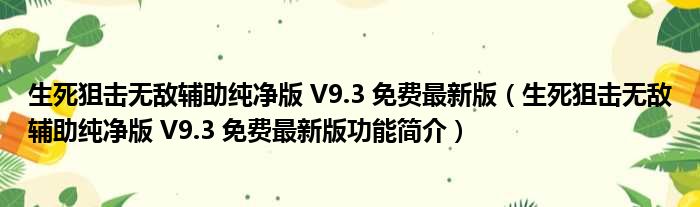 生死狙击无敌辅助纯净版 V9.3 免费最新版(生死狙击无敌辅助纯净版 V9.3 免费最新版功能简介)
