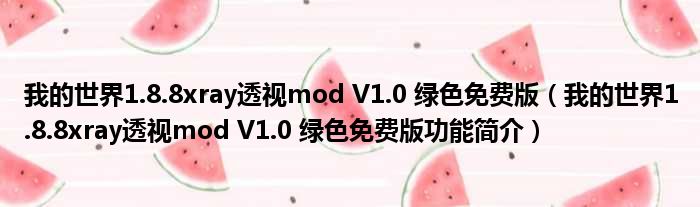 导读 大家好,关于我的世界1 8 8xray透视mod V1 0 绿色免费版,我的世界1 8 8xray透视mod V1 0 绿色免费版功能简介这个很多人还不知道,小勒来