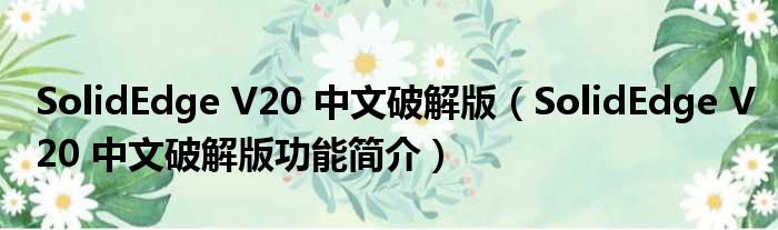 SolidEdge V20 中文破解版(SolidEdge V20 中文破解版功能简介)
