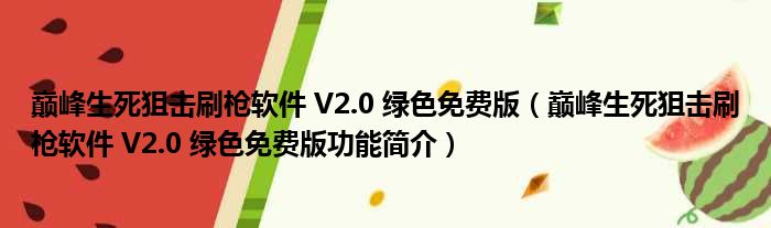 巅峰生死狙击刷枪软件 V2.0 绿色免费版(巅峰生死狙击刷枪软件 V2.0 绿色免费版功能简介)