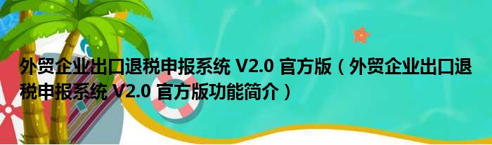导读 大家好,关于外贸企业出口退税申报系统 V2 0 官方版,外贸企业出口退税申报系统 V2 0 官方版功能简介这个很多人还不知道,小勒来为大家解