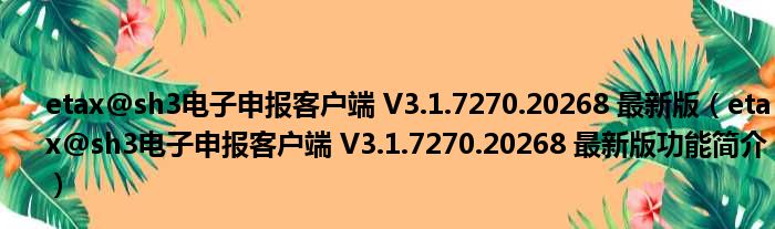 etax@sh3电子申报客户端 V3.1.7270.20268 最新版(etax@sh3电子申报客户端 V3.1.7270.20268 最新版功能简介)