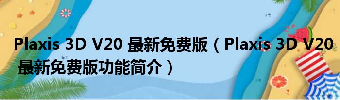 Plaxis 3D V20 最新免费版(Plaxis 3D V20 最新免费版功能简介)