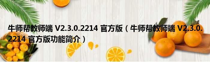 导读 大家好,关于牛师帮教师端 V2 3 0 2214 官方版,牛师帮教师端 V2 3 0 2214 官方版功能简介这个很多人还不知道,小勒来为大家解答以上的问