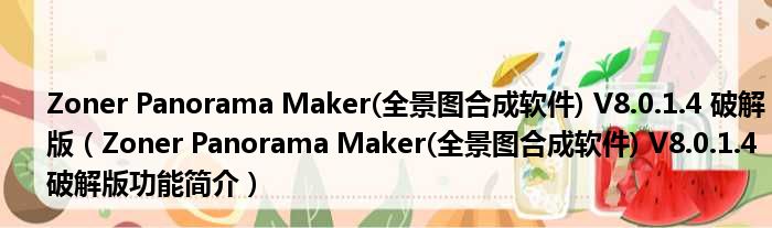 Zoner Panorama Maker(全景图合成软件) V8.0.1.4 破解版(Zoner Panorama Maker(全景图合成软件) V8.0.1.4 破解版功能简介)