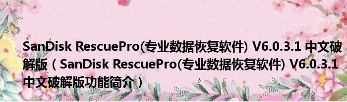 SanDisk RescuePro(专业数据恢复软件) V6.0.3.1 中文破解版(SanDisk RescuePro(专业数据恢复软件) V6.0.3.1 中文破解版功能简介)