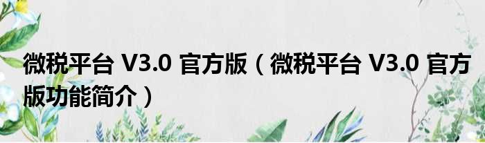 微税平台 V3.0 官方版(微税平台 V3.0 官方版功能简介)