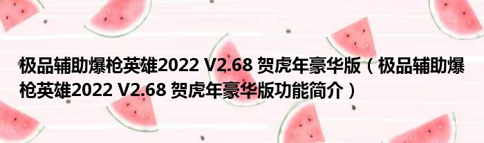 极品辅助爆枪英雄2022 V2.68 贺虎年豪华版(极品辅助爆枪英雄2022 V2.68 贺虎年豪华版功能简介)