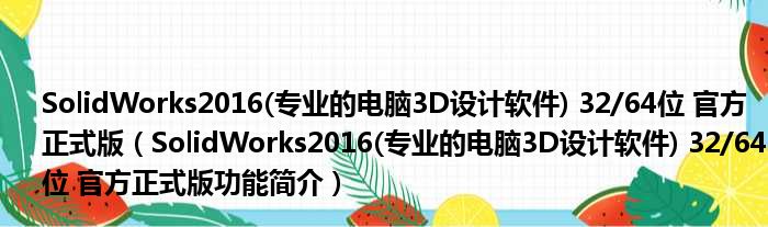 SolidWorks2016(专业的电脑3D设计软件) 32/64位 官方正式版(SolidWorks2016(专业的电脑3D设计软件) 32/64位 官方正式版功能简介)