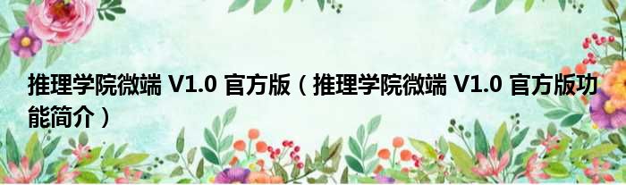 推理学院微端 V1.0 官方版(推理学院微端 V1.0 官方版功能简介)