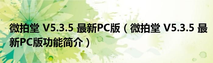 微拍堂 V5.3.5 最新PC版(微拍堂 V5.3.5 最新PC版功能简介)