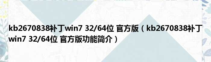 kb2670838补丁win7 32/64位 官方版(kb2670838补丁win7 32/64位 官方版功能简介)