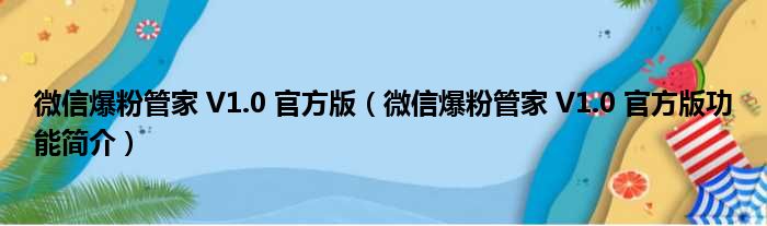 导读 大家好,关于微信爆粉管家 V1 0 官方版,微信爆粉管家 V1 0 官方版功能简介这个很多人还不知道,小勒来为大家解答以上的问题,现在让我们