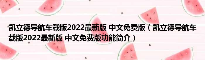 凯立德导航车载版2022最新版 中文免费版(凯立德导航车载版2022最新版 中文免费版功能简介)
