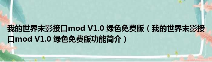 我的世界末影接口mod V1.0 绿色免费版(我的世界末影接口mod V1.0 绿色免费版功能简介)