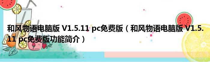 导读 大家好,关于和风物语电脑版 V1 5 11 pc免费版,和风物语电脑版 V1 5 11 pc免费版功能简介这个很多人还不知道,小勒来为大家解答以上的问