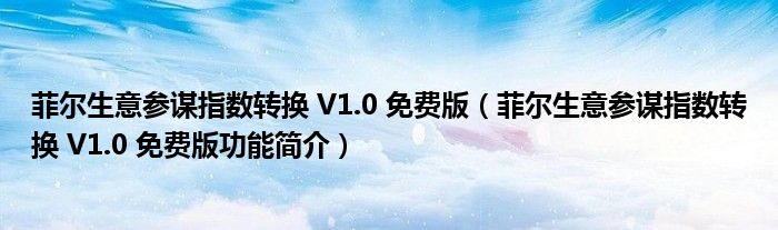 菲尔生意参谋指数转换 V1.0 免费版(菲尔生意参谋指数转换 V1.0 免费版功能简介)