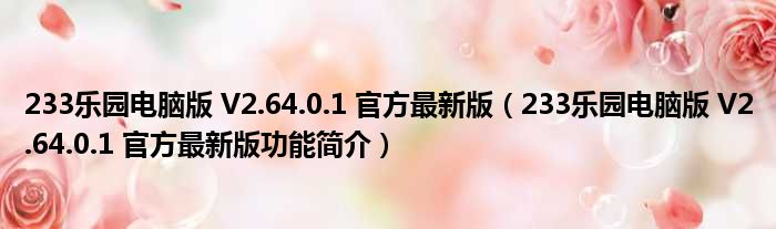 233乐园电脑版 V2.64.0.1 官方最新版(233乐园电脑版 V2.64.0.1 官方最新版功能简介)