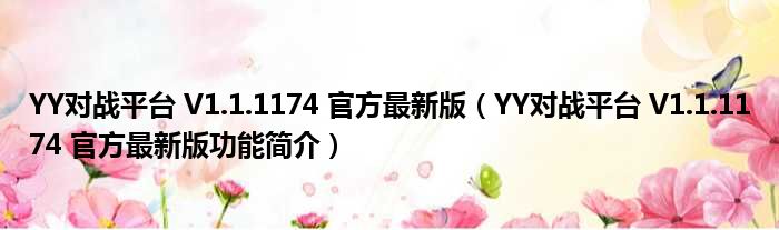 YY对战平台 V1.1.1174 官方最新版(YY对战平台 V1.1.1174 官方最新版功能简介)
